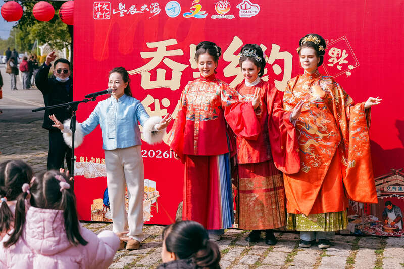 中国青年报客户端讯(刘超杰 沈家迪 中青报·中青网记者 王军利)近日,“岙里乡约·我们的村集”2026“千年马岙年货集”在浙江舟山定海开幕。浙江海洋大学的留学生们身着汉服,走进充满年味的市集,沉浸式体验中国传统文化,成为集市中一道亮丽的风景线。