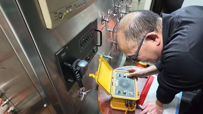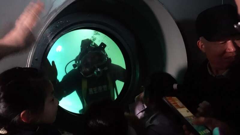 减压舱位于参观通道的一侧,不时就有游客通过。趁游客量少的时候,赵春霞和队友赶紧换好潜水服,接通了水下电话线路和空气软管。紧接着,她和另外两名队友爬进了减压舱,老队员刘吉强则在舱外负责后勤保障以及作业指挥。