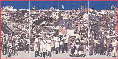 版画《沸腾的中国》,作者孔国桥、鲁利锋、周崇涨、王克景。