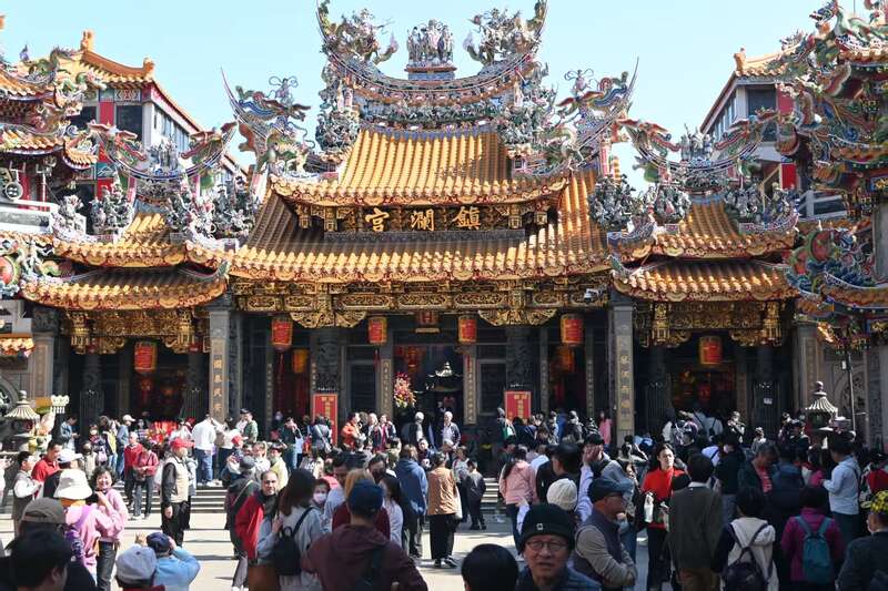 春节假期,台湾台中市大甲镇澜宫内人头攒动。受访者供图