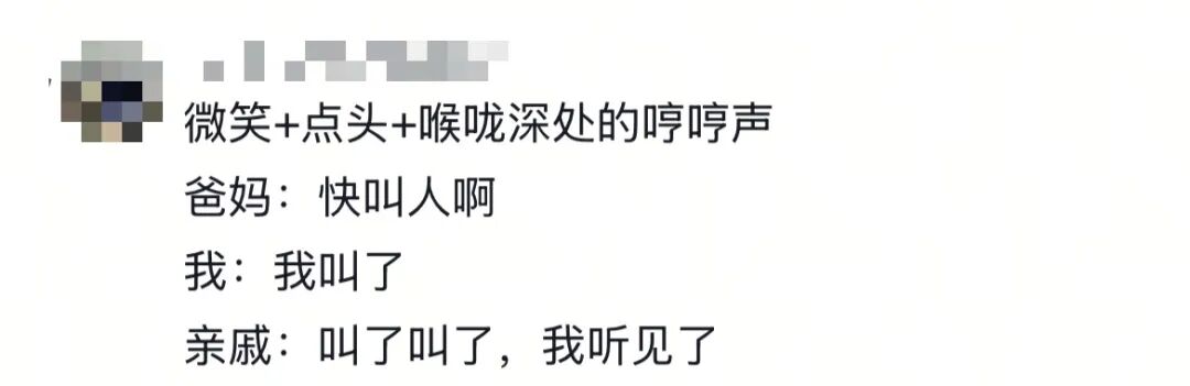 当我跟着爸爸妈妈去拜年:“快叫声!”亲戚:“叫了叫了,我听见了……”