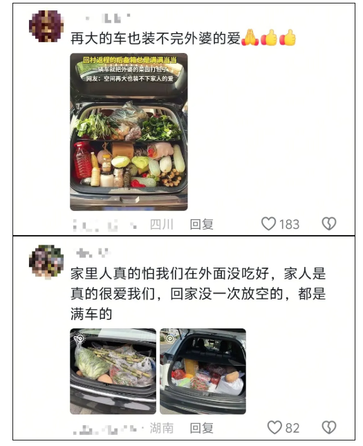 “回村返程的后备箱总是满满当当”