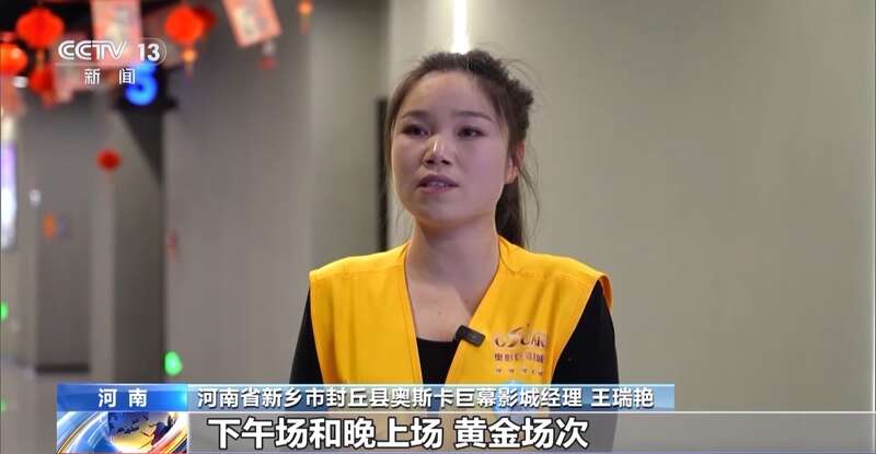 河南省新乡市封丘县奥斯卡巨幕影城经理 王瑞艳:下午场和晚上场是黄金场次,上座率基本上能达到100%,座无虚席。