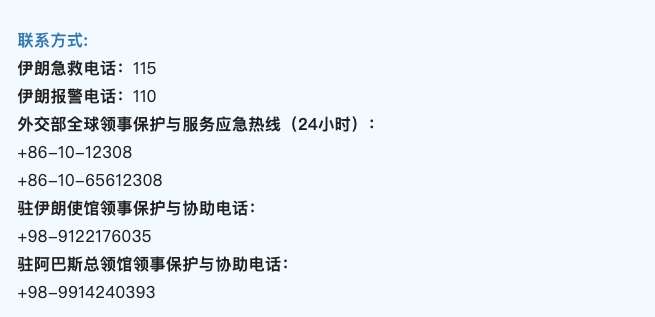 如遇紧急情况,请及时向当地警方报警,并与驻伊朗使领馆联系。