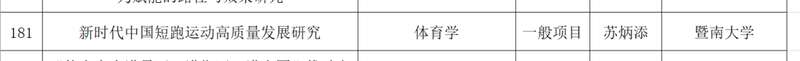 稍早前,2月10日,广东省哲学社会科学规划2026年度常规项目、三类研究专项拟立项名单公示,苏炳添教授的课题《新时代中国短跑运动高质量发展研究》拟立项一般项目,学科分类为“体育学”,所属学校为暨南大学。