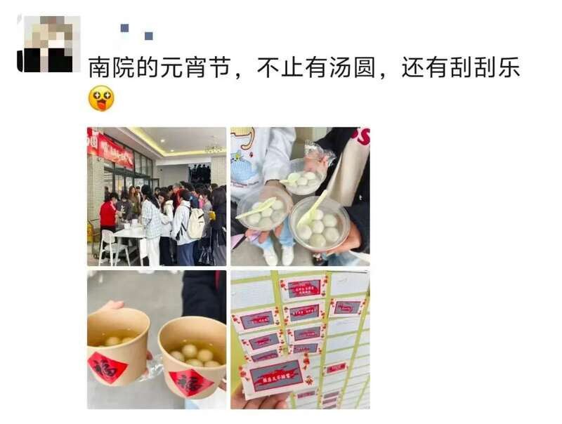 元宵节当日,广州南方学院回应学生新年愿望“想吃一碗热乎乎的黑芝麻汤圆”:面向全校免费发放汤圆与马年好运刮刮卡——6元元气早餐券、15元饮品券、15元学霸正餐券、好运锦鲤券(校园文创)......