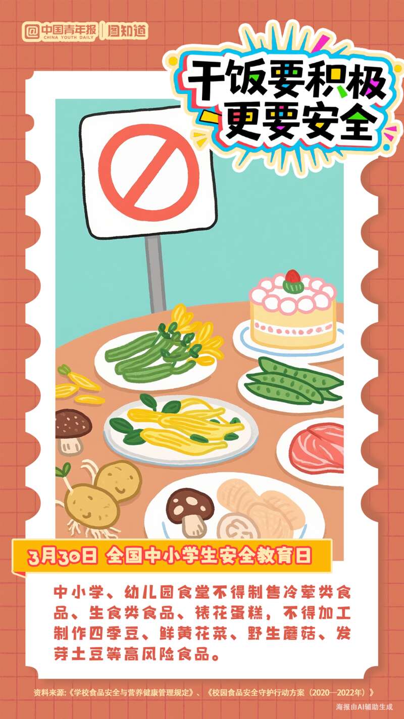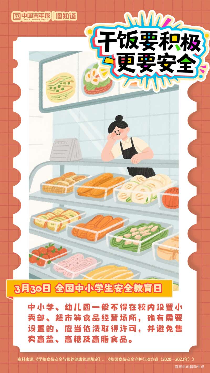 校门口的“五毛食品”健康吗?幼儿园食堂能不能加工野蘑菇?每年3月份最后一周的星期一,是全国中小学生“安全教育日”。今天的课,一起学习食品安全知识,做到干饭要积极更要安全。