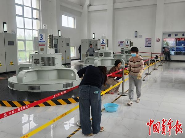 4月9日,河南省彭楼灌区泵闸站的工作人员正在做日常清洁工作。中青报·中青网记者 魏婉/摄