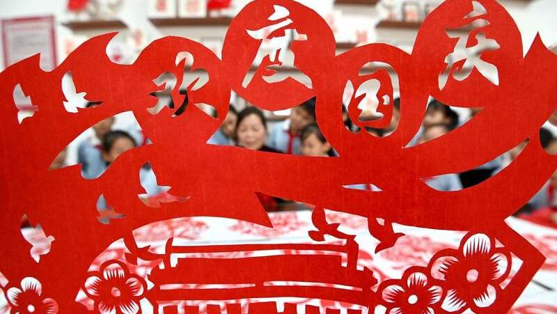 Hebei, China: Teachers and Students Create Paper-Cut Art to Celebrate National Day