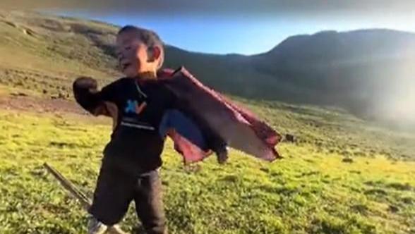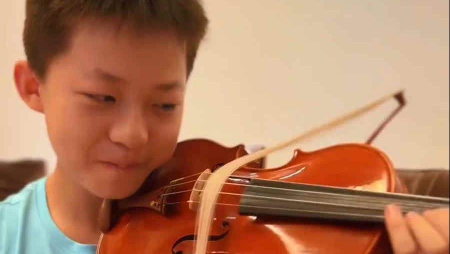 This little boy had a whimsical idea—using a violin bow as a feather duster!