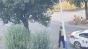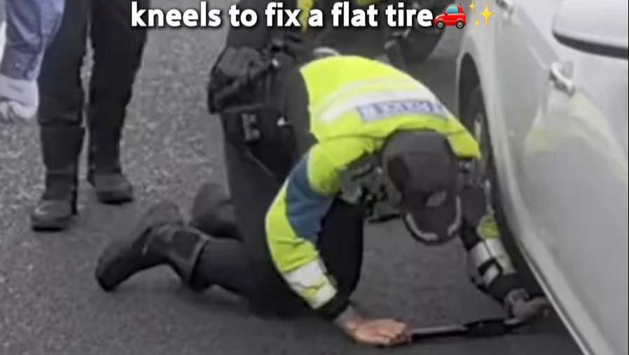 This police officer immediately stopped to assist when a tricycle driver became stuck on the curb.