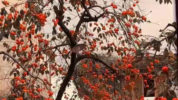 The persimmons have ripened into fiery gems, heralding the warmth of autumn.