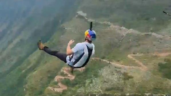 Witness the jaw-dropping moment a skydiver leaps from a Bridge in Guizhou!