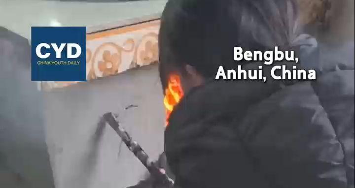 A post-00s girl in Bengbu draws on the stove with a firewood stick