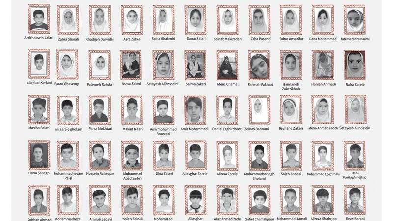 The Tehran Times published a full page of photos of the children who lost their lives