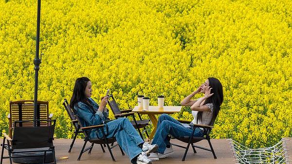 2026年4月8日,山东高密,东流口子小学将课堂搬进校园周边桃林,老师带领学生在林间赏桃花、追跑嬉戏、临摹花影、了解农事,让孩子们感受大自然的魅力。