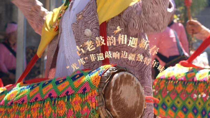 云南盈江傣寨“光邦”鼓声传递新春祝福