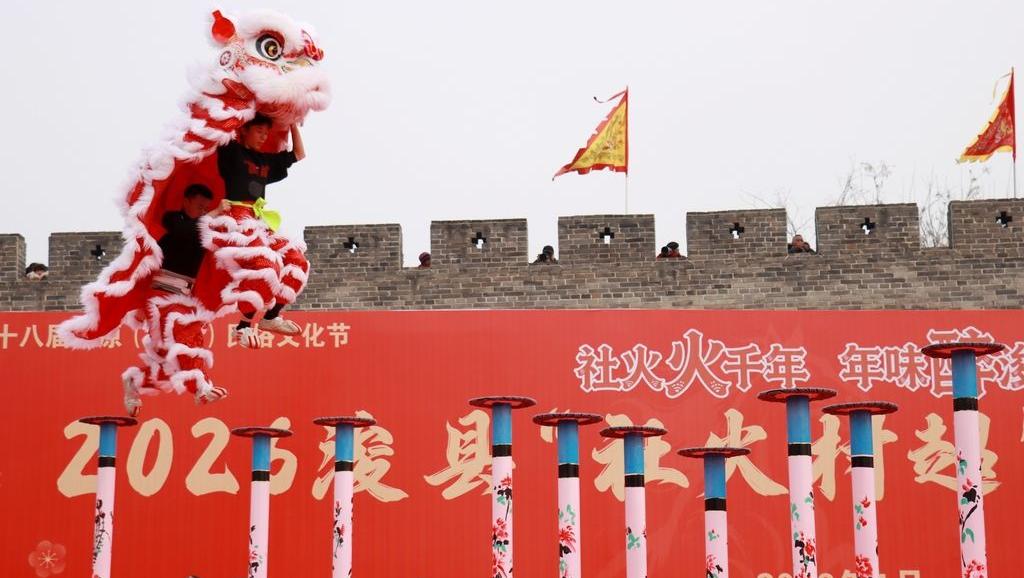 河南浚县:“社火村超”舞狮晋级赛