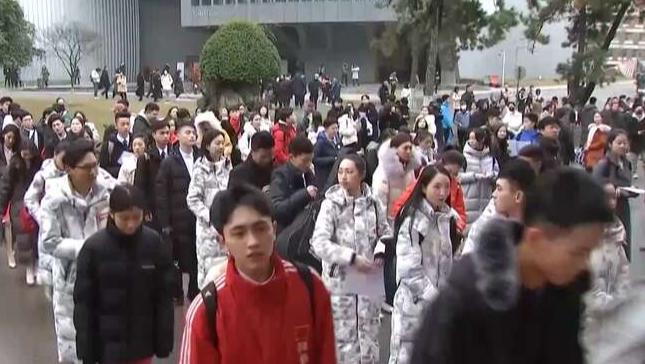 在南京工业大学的招聘会现场,各大企业展位前排起长队。