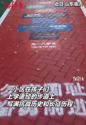 一小区在孩子们上学途经的步道上写满抗战历史和长征历程,“让孩子从历史中汲取奋进力量”。