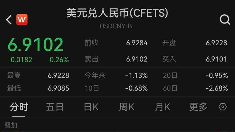 人民币对美元即期汇率和离岸人民币对美元汇率累计升值了1.1%