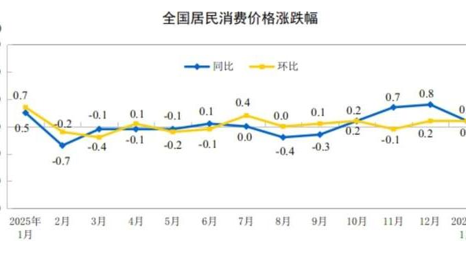 消费品价格上涨0.3%,服务价格上涨0.1%。