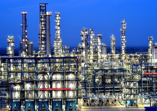 大美石化之石炼800万油品质量升级项目装置区夜景