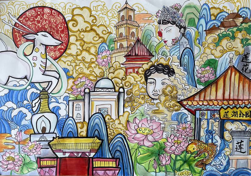作品简介:描绘的是以荷仙子为主的作品,想象着她萦绕在仙气十足的环境中,这里有山有水、有莲湖公园。