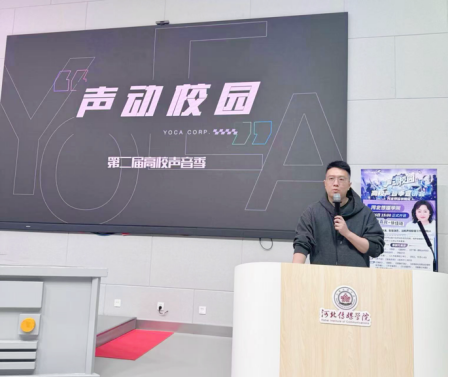 活动伊始,有咖互动集团商务总监肖峣对比赛的赛道(配音、朗诵、翻唱)、IP素材、评委阵容、比赛报名流程等进行了详细的说明,并鼓励我校学生把握此次机遇,积极投身于本次大赛之中。之后,首届大赛获奖选手赵志超分享了参赛心得。