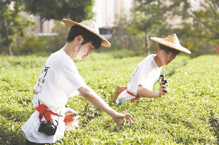 海内外大学生走进茶乡安溪 大学生体验采茶 (李杨润 摄)