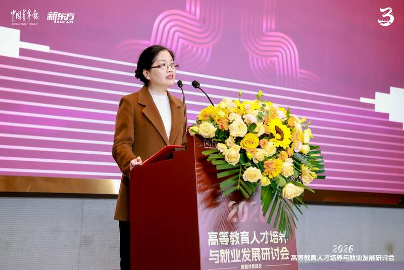 4月23日,湖南省人力资源和社会保障厅党组成员、副厅长焦华芳在2026高等教育人才培养与就业发展研讨会上致辞。主办方供图