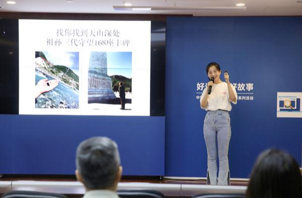 8月16日,北京中青大厦,来自中国青年报社中青在线的记者戴月婷做主题为《找你找到天山深处 祖孙三代守望168座丰碑》的演讲。当日,中国青年报社青年人才周系列活动“好记者讲好故事”初赛在北京中青大厦举行。来自报社的6位一线记者就自己采访领域中遇到的感人故事,给现场和线上的听众做了声情并茂的分享。中青报·中青网记者 陈剑/摄