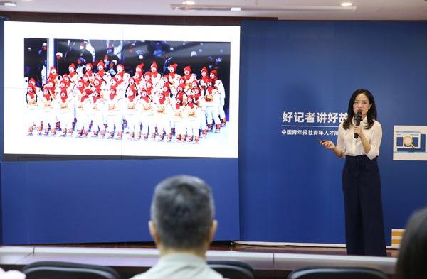 8月16日,北京中青大厦,来自中国青年报社体育部的记者梁璇做主题为《冬残奥“三冠王”来自北纬25度》的演讲。中青报·中青网记者 陈剑/摄