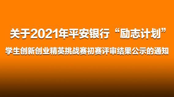 关于2021年平安银行“励志计划” 大学生创新创业精英挑战赛初赛评审结果公示的通知