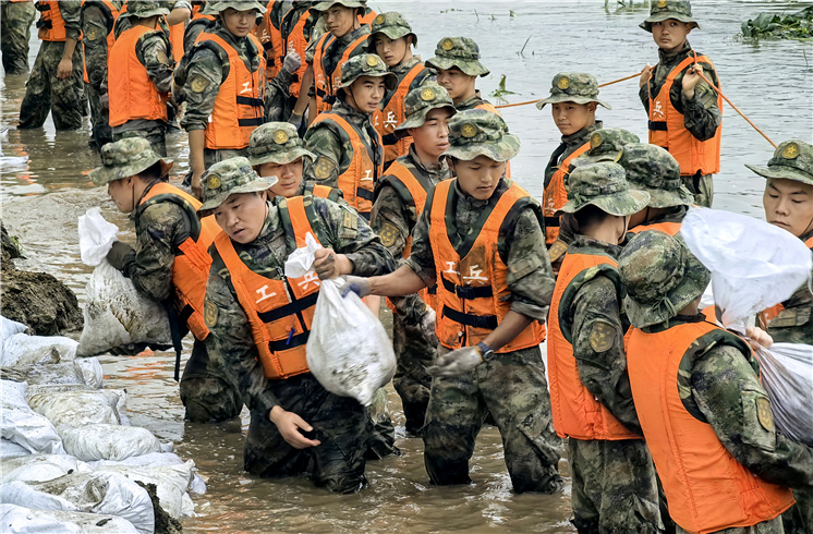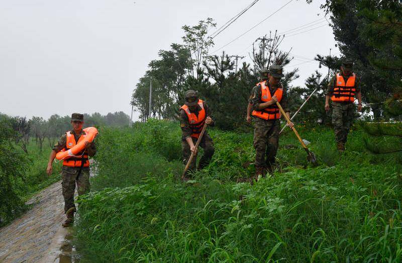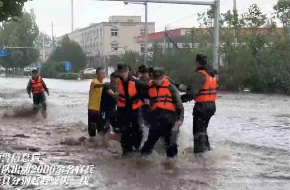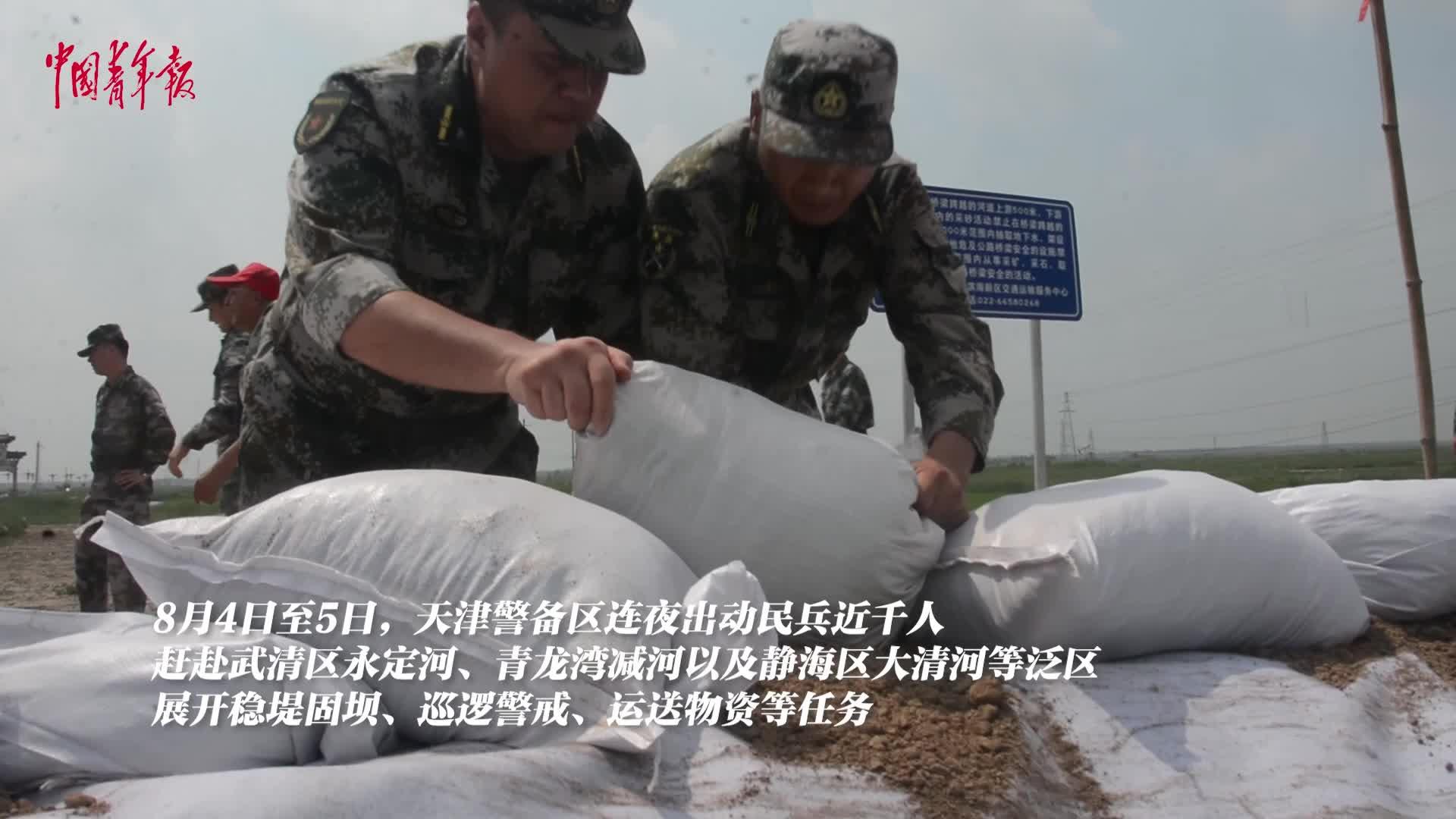 天津警备区累计派遣官兵近4000人,日夜展开应急抢险。