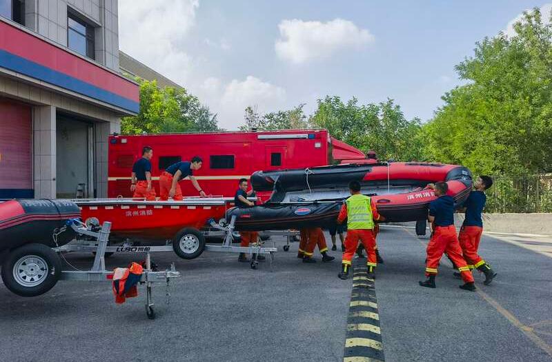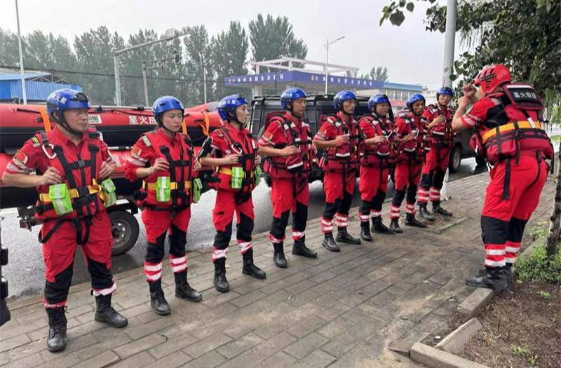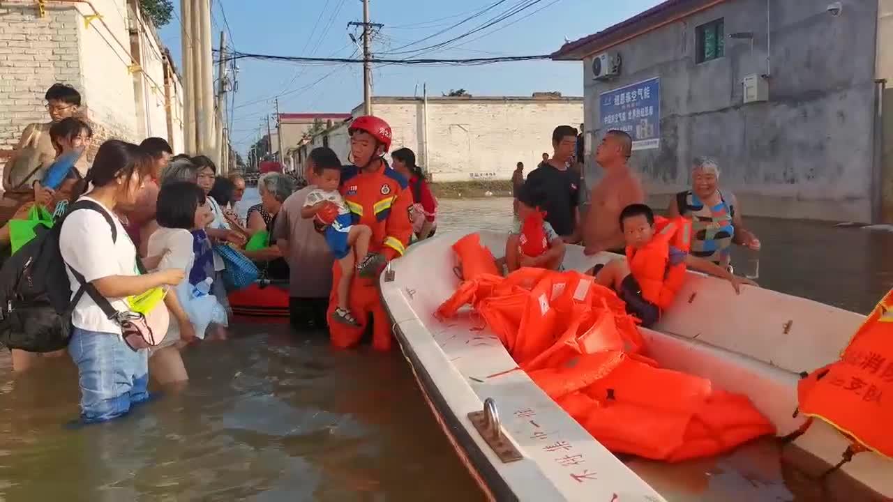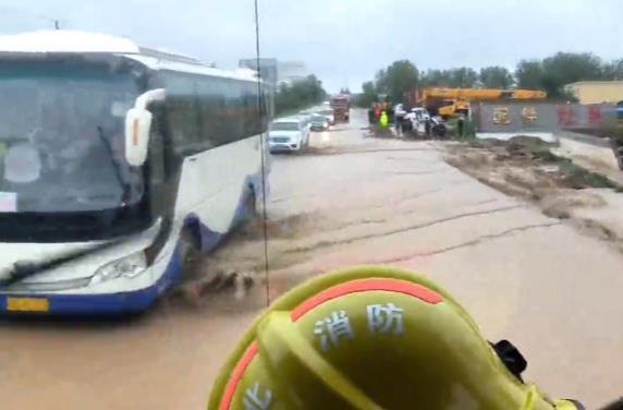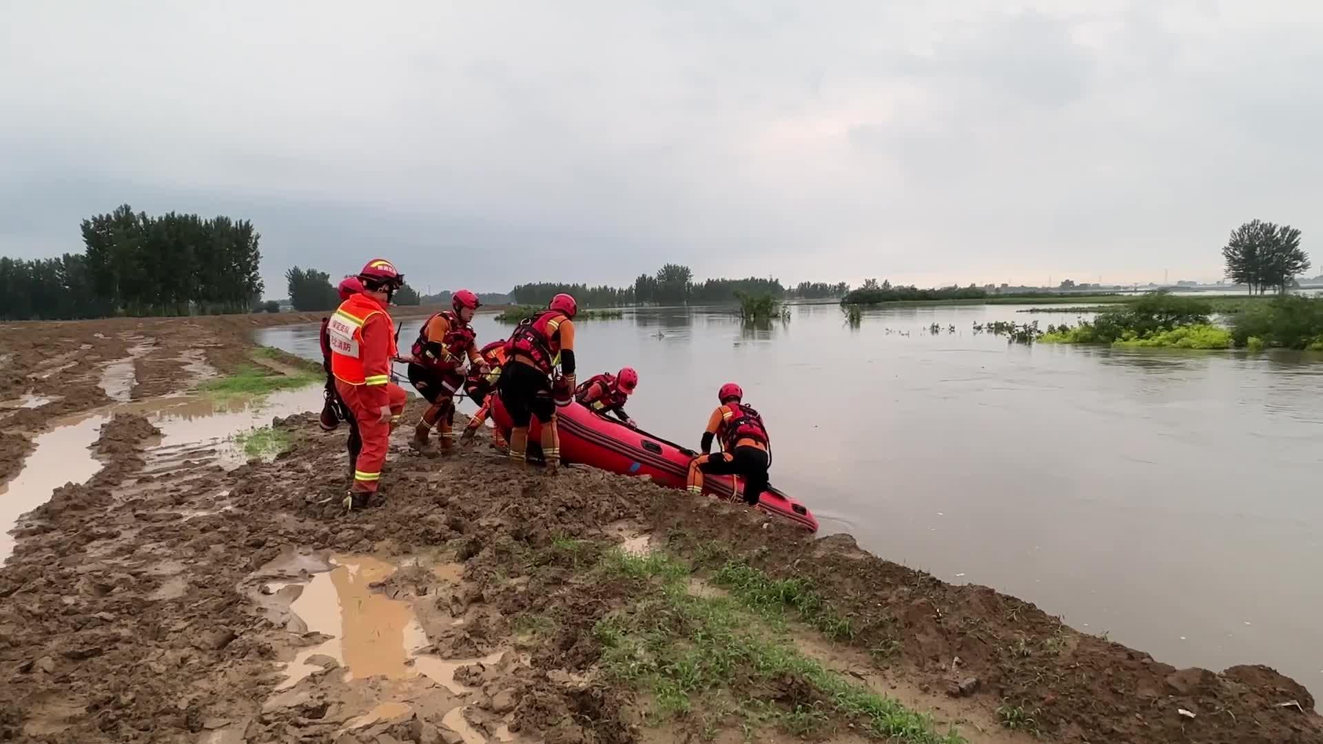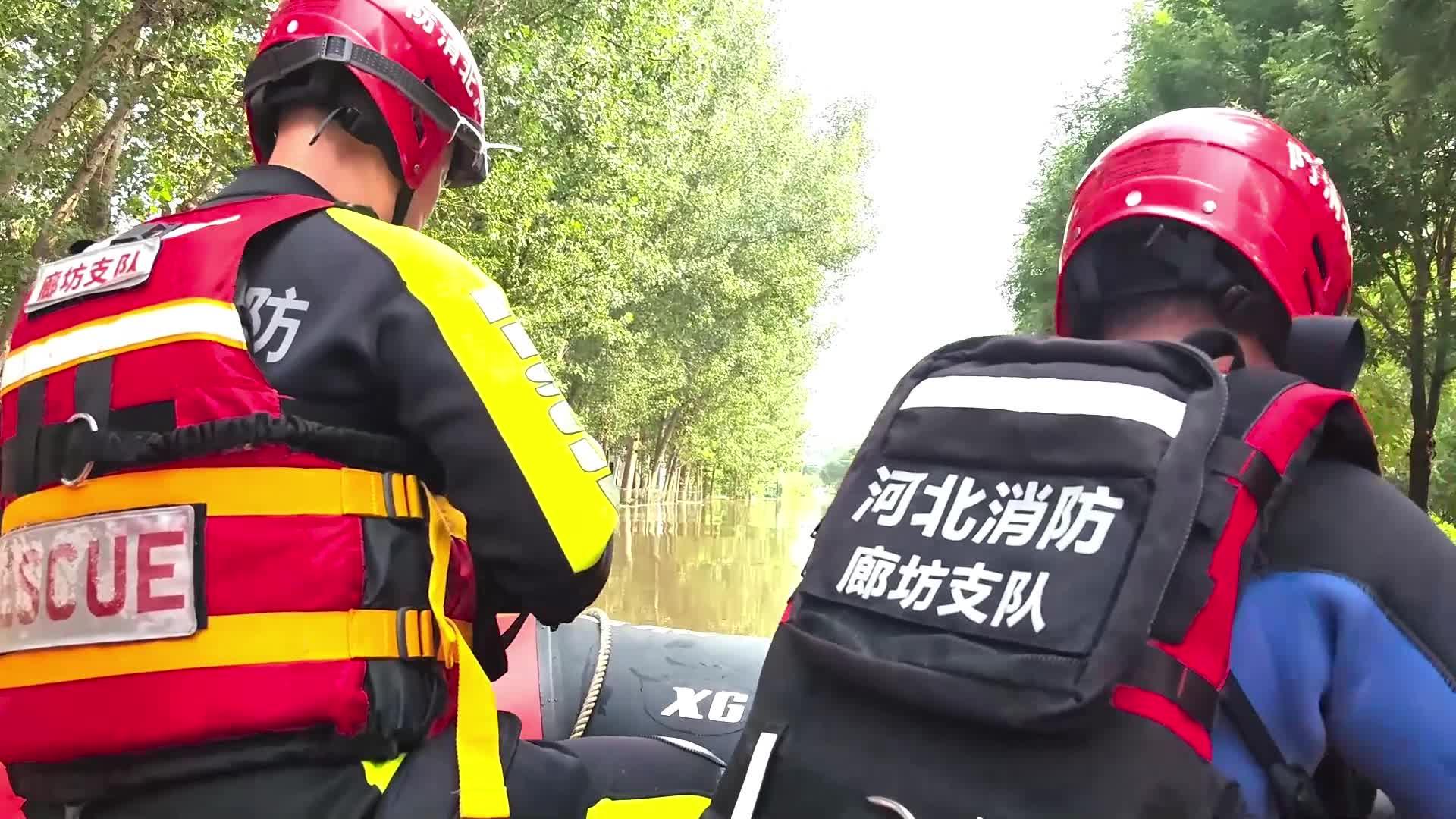怀来县大队消防救援人员闻警出动,营救遇险群众。