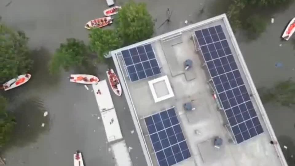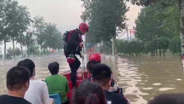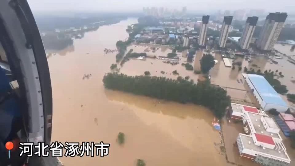 河北涿州一小区受灾严重,救援直升机空中施救已转移33人。