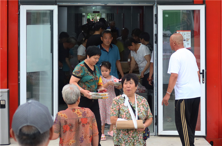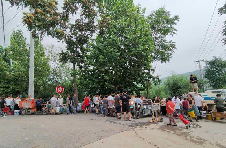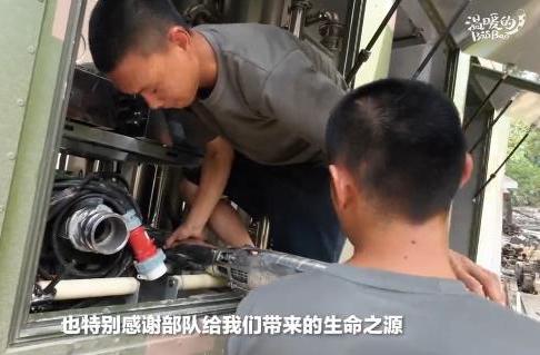 官兵进村入户为受灾群众送水,缓解了灾区群众的燃眉之急。