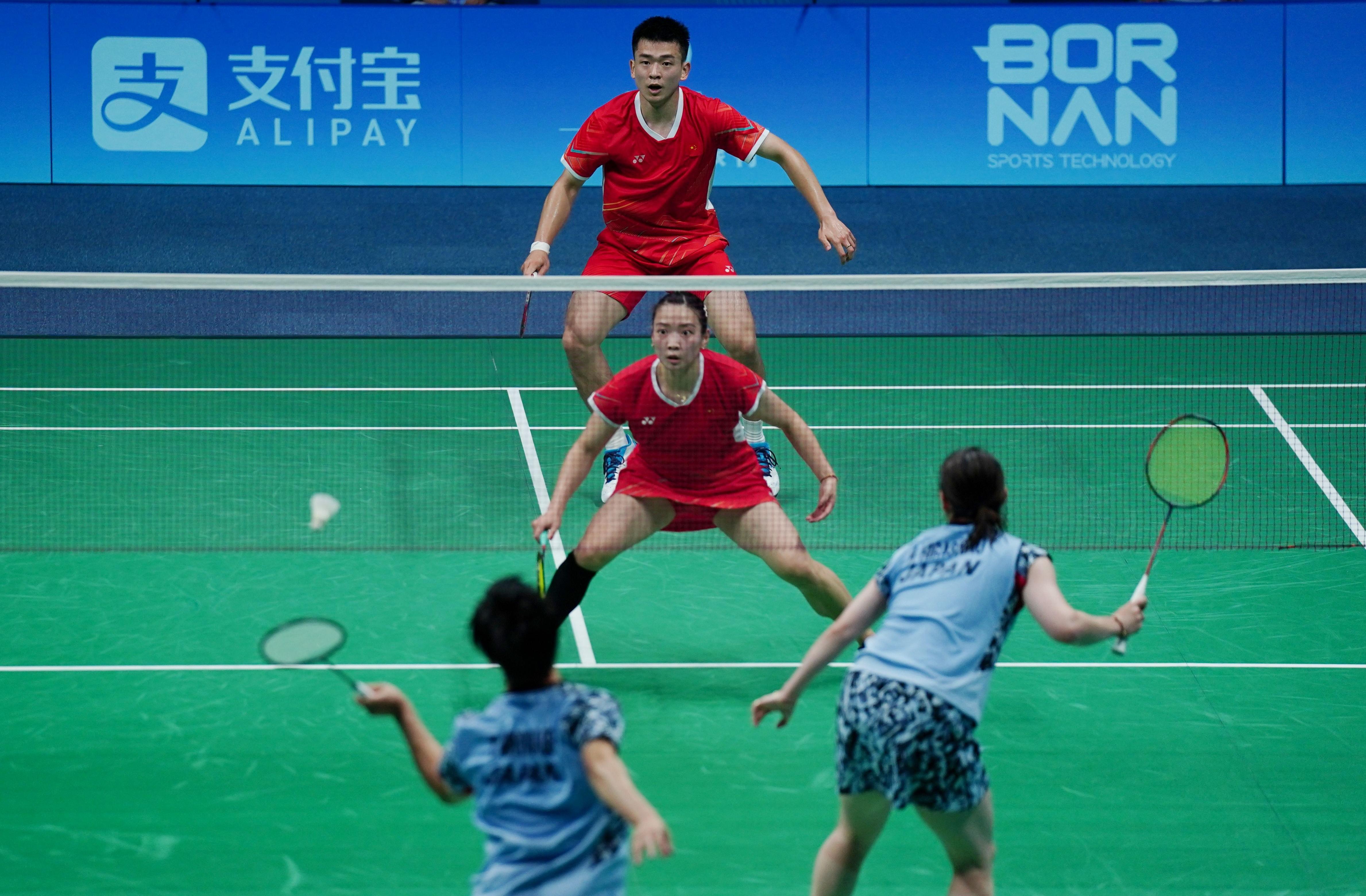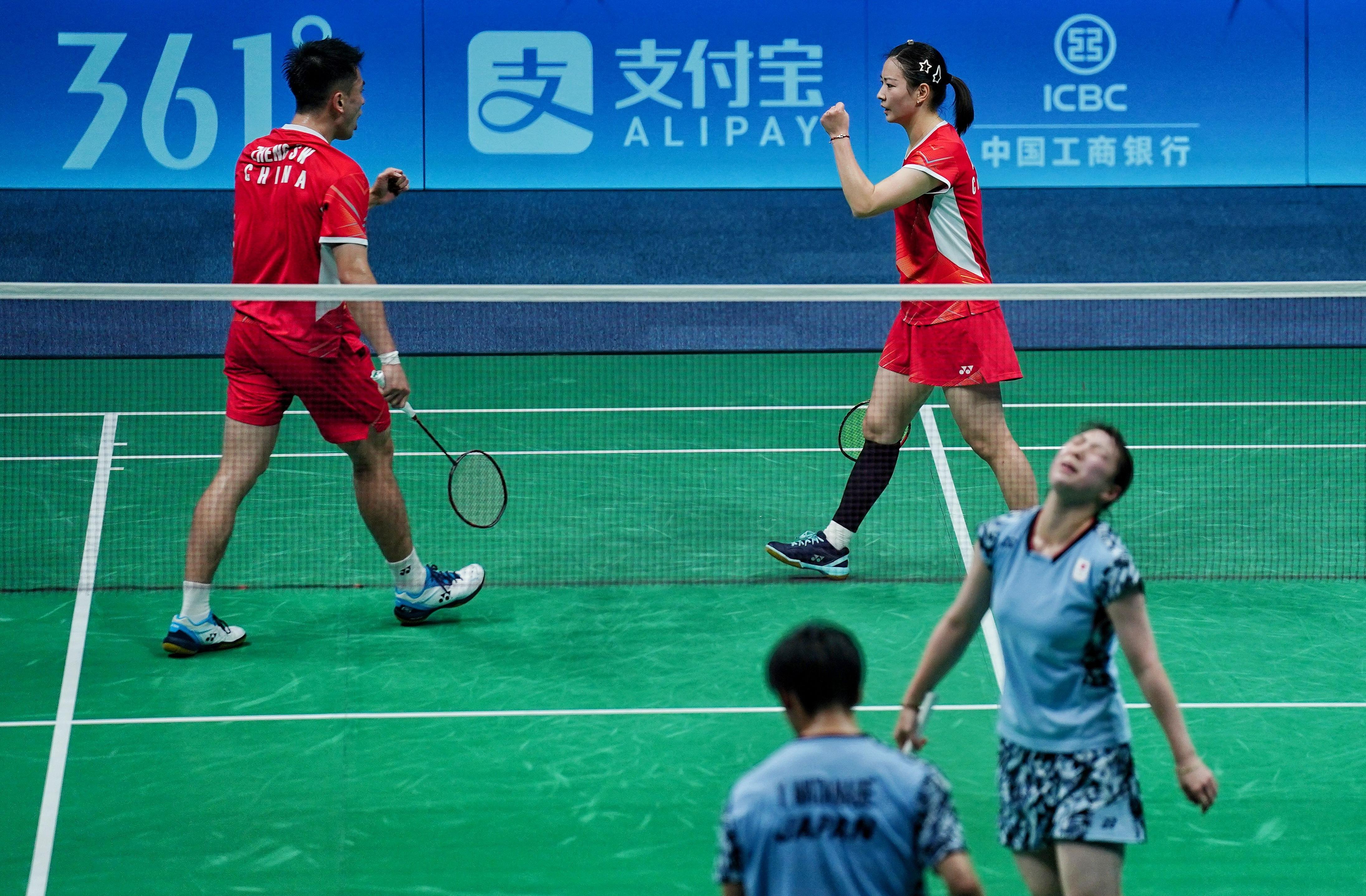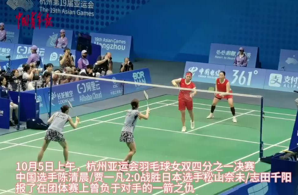 羽毛球女双四分之一决赛上,中国选手陈清晨/贾一凡以2:0战胜老对手、日本组合松山奈未/志田千阳。
