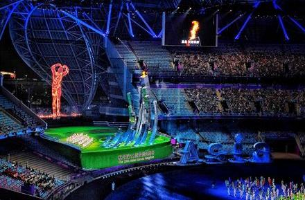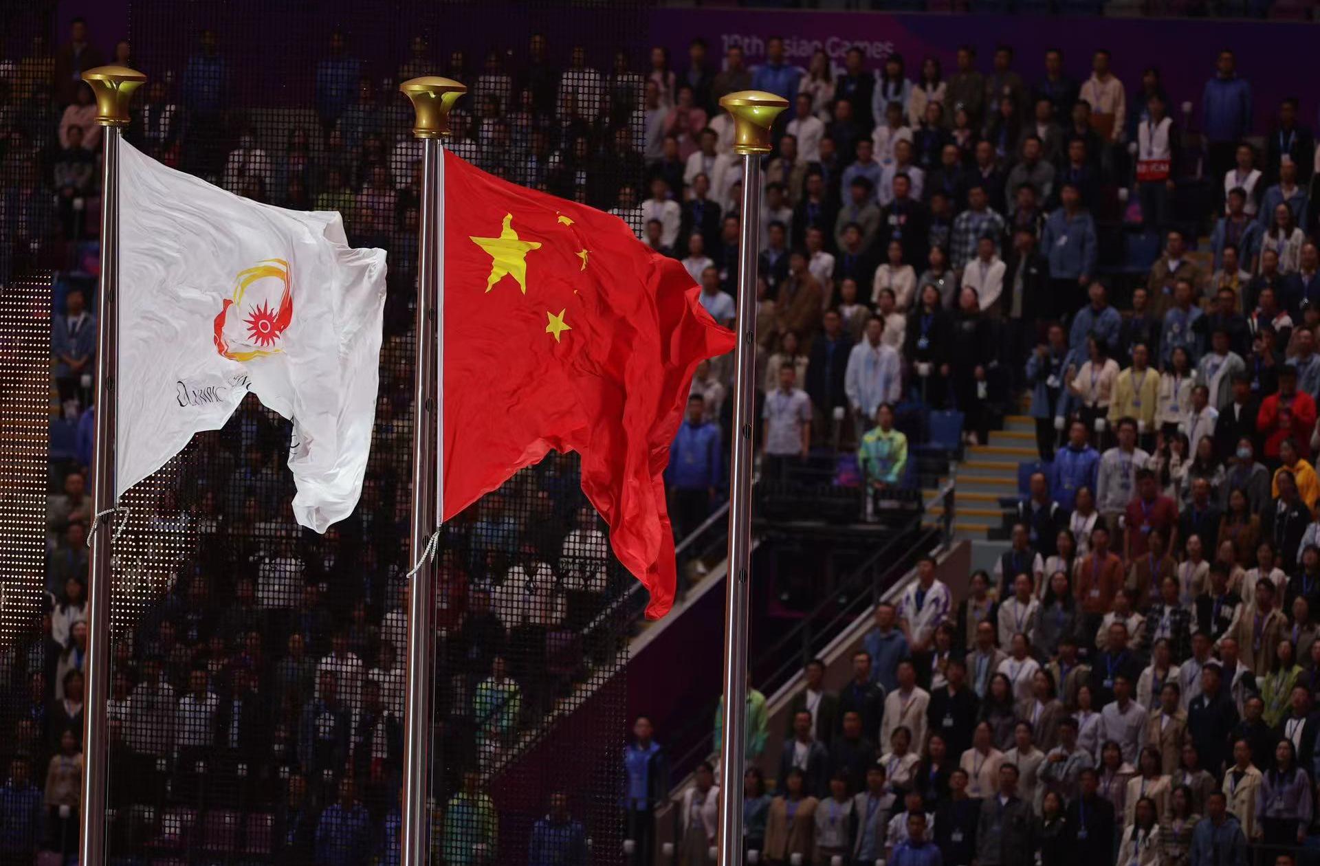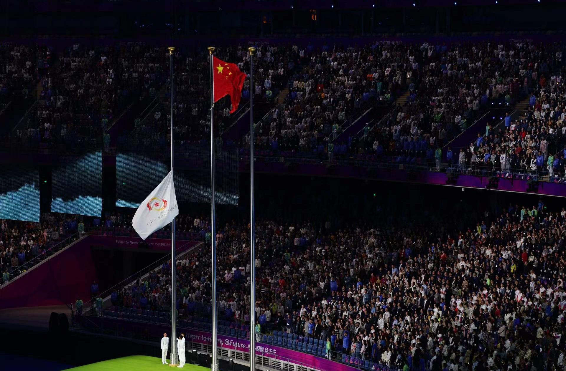 在悠扬的歌声中,亚奥理事会会旗缓缓降下。