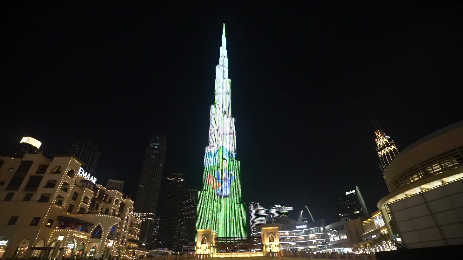 主火炬塔与焰火一起倒映在东安湖的水面上,照亮了夜空