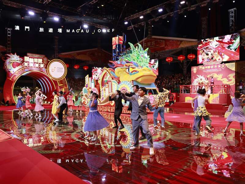 澳门大年初三上演花车巡游及烟花表演 市民游客欢声笑语共贺新春