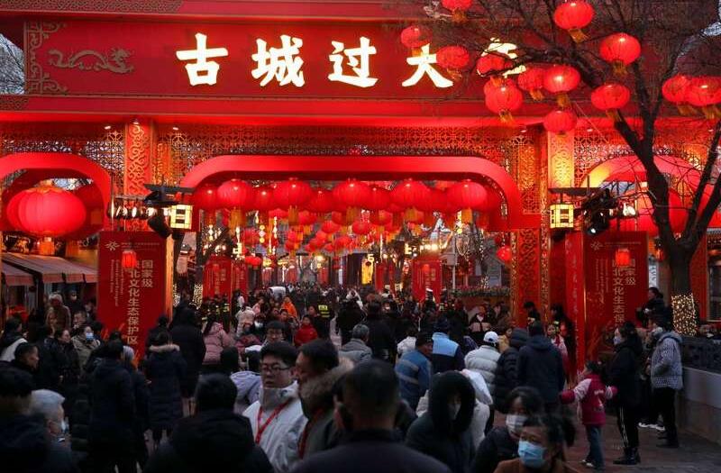 红灯笼映红游人脸!实拍香港年初五街头:头顶是锦鲤眼前是长龙