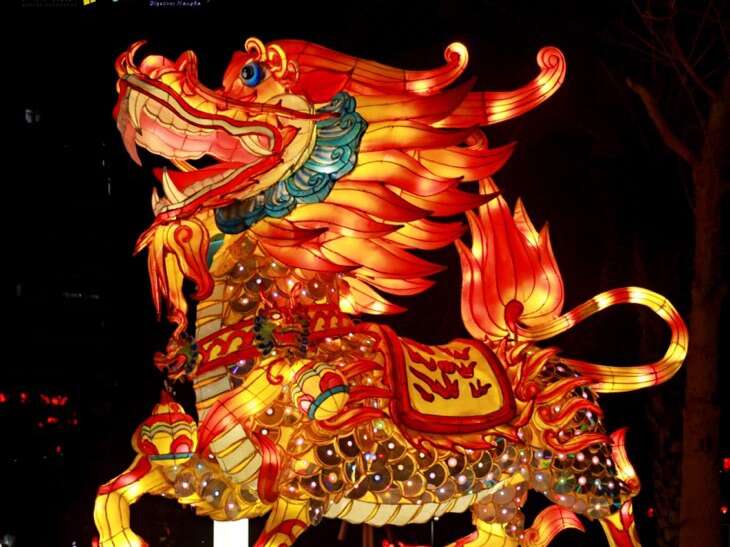巨型龙灯“蛟龙出海”在北京什刹海荷花市场试亮相