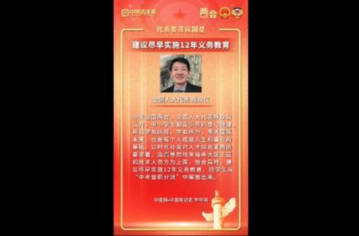 建议尽早实施12年义务教育,把学生从“中考普职分流”中解脱出