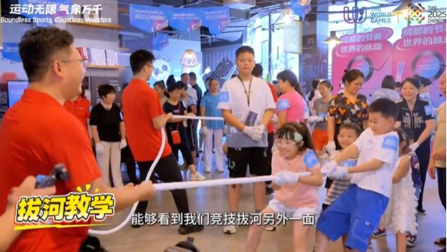 200多名市民一起感受成都世运会竞赛项目——拔河。