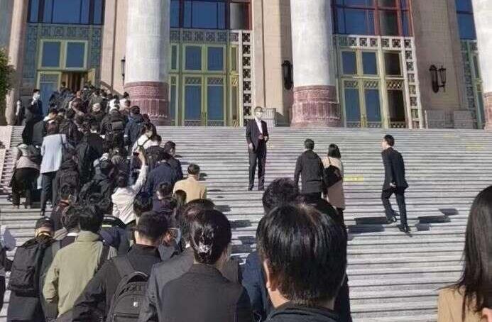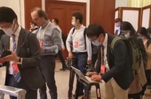 10时许,记者们已经来到人民大会堂东大门排队进入。