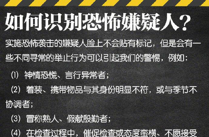 遇到这些可疑情况很可能发生恐怖袭击!请立即报警!!