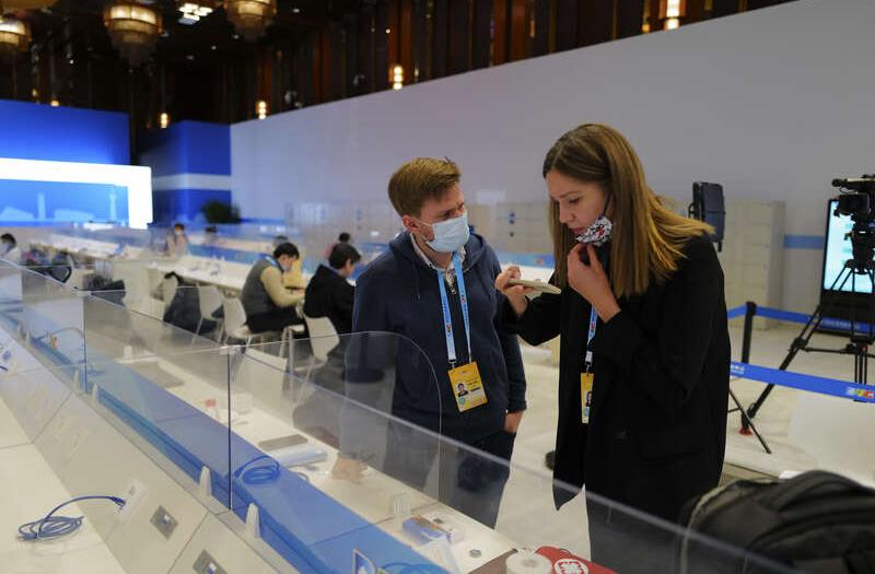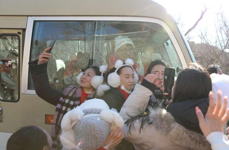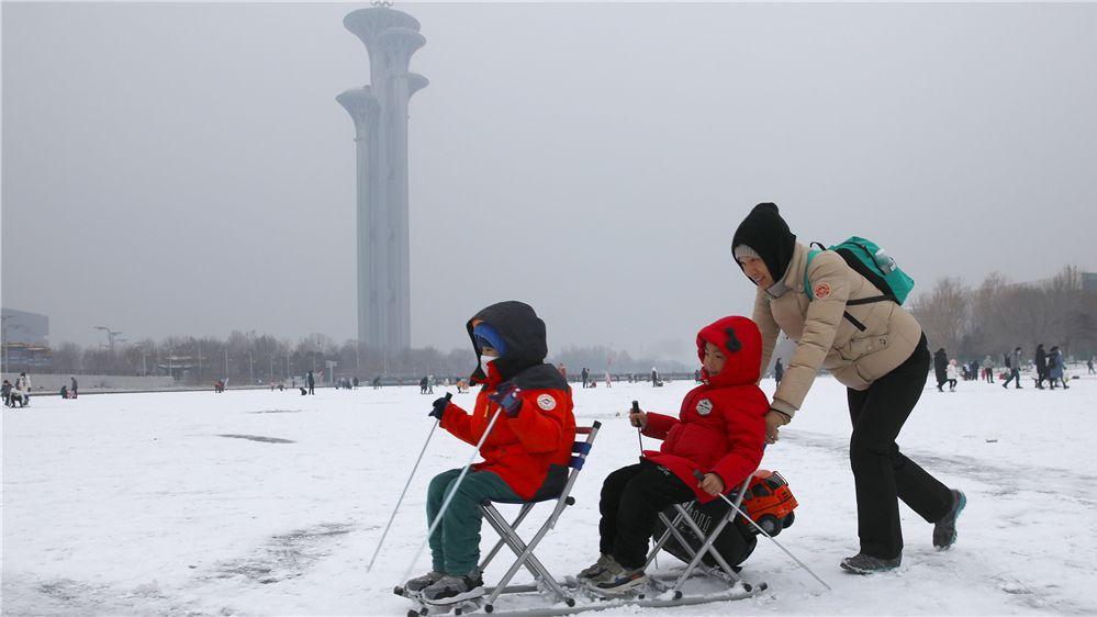 在冬奥场馆附近感受冰雪运动的乐趣。