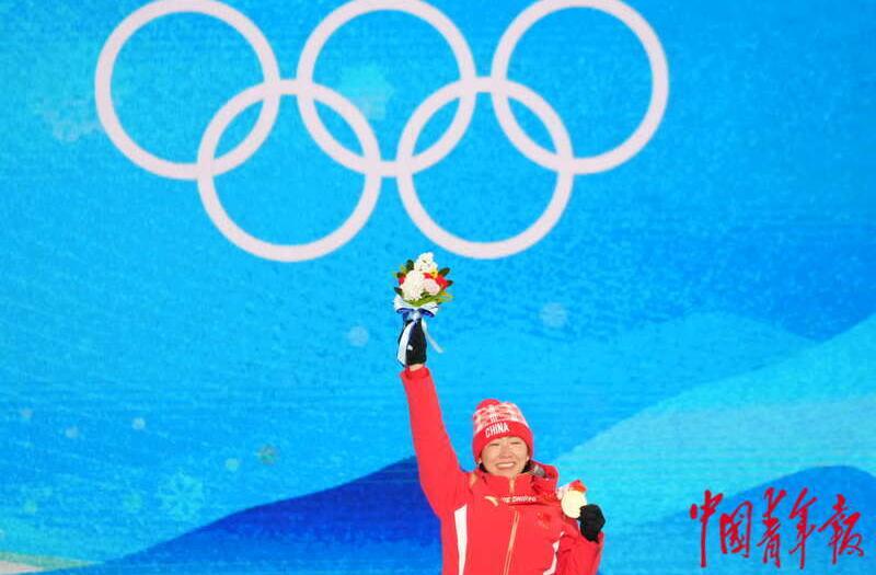 谷爱凌获得冬奥会历史上首枚自由式滑雪女子大跳台金牌。